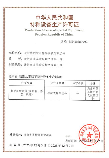 开封共创智汇停车科技有限公司总部位于开封市城乡一体化示范区,拥有研发生产厂区80亩,钢结构车间25000平方米,大型综合试验场8000平方米,立体停车设备年生产能力30000车位。